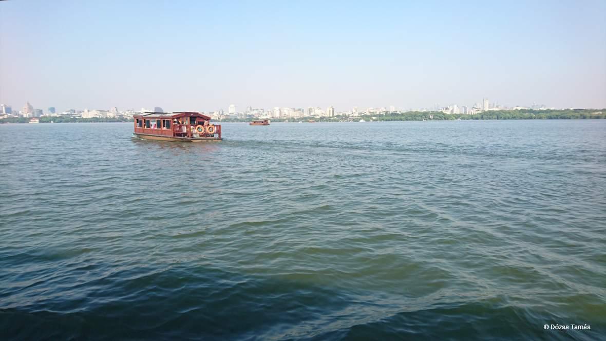 Reggeli a szállodában, majd egész napos városnézés Hangzhouban: a számtalan Buddha szoborral rendelkező, különleges szépségű Lingyin templom együttes felkeresése, majd a csodás kilátást biztosító Hat harmónia pagoda. Ebéd, majd utána hajókirándulás az évszázadok óta csodált Nyugati-tavon. Szállás Hangzhouban, 4 csillagos, belvárosi szállodában.